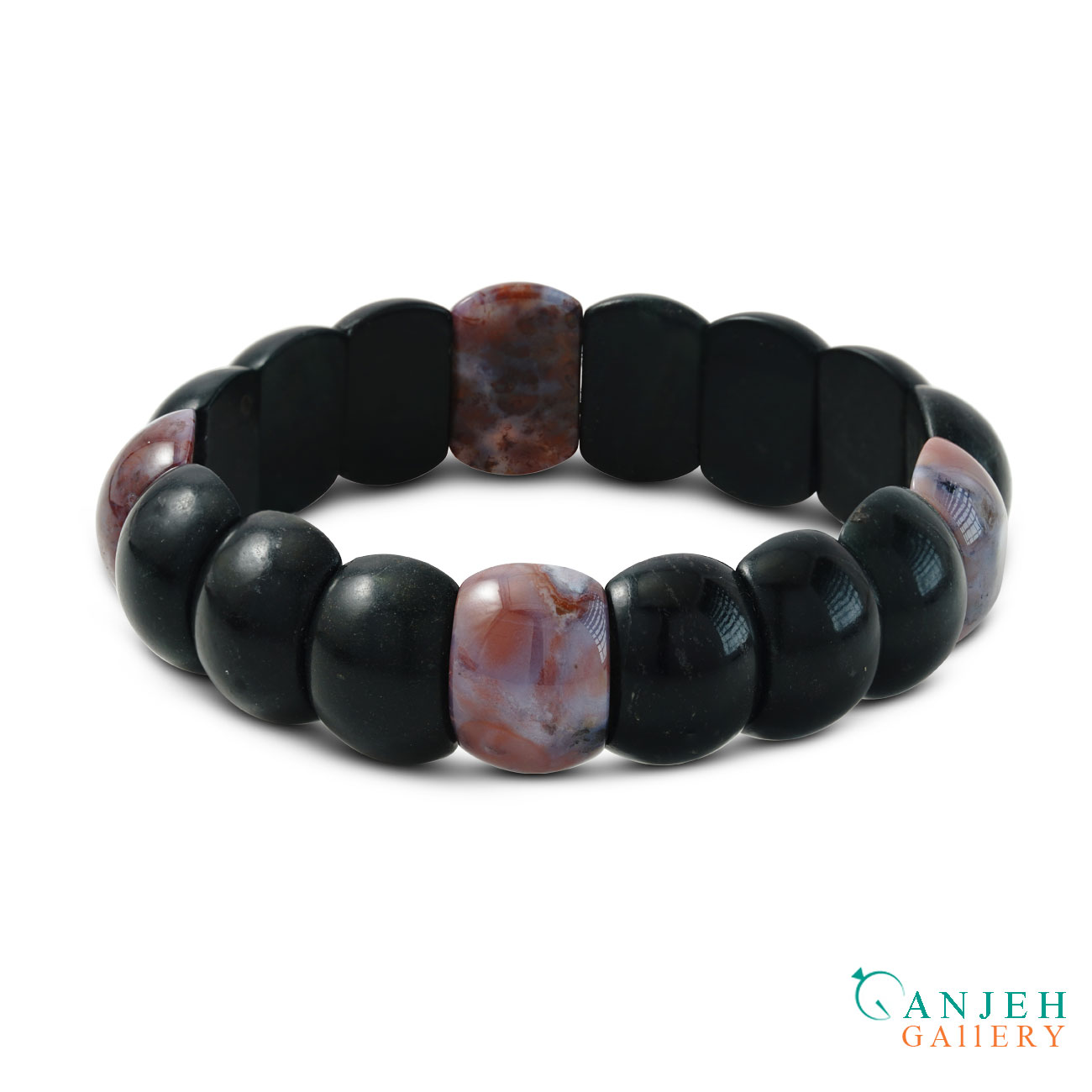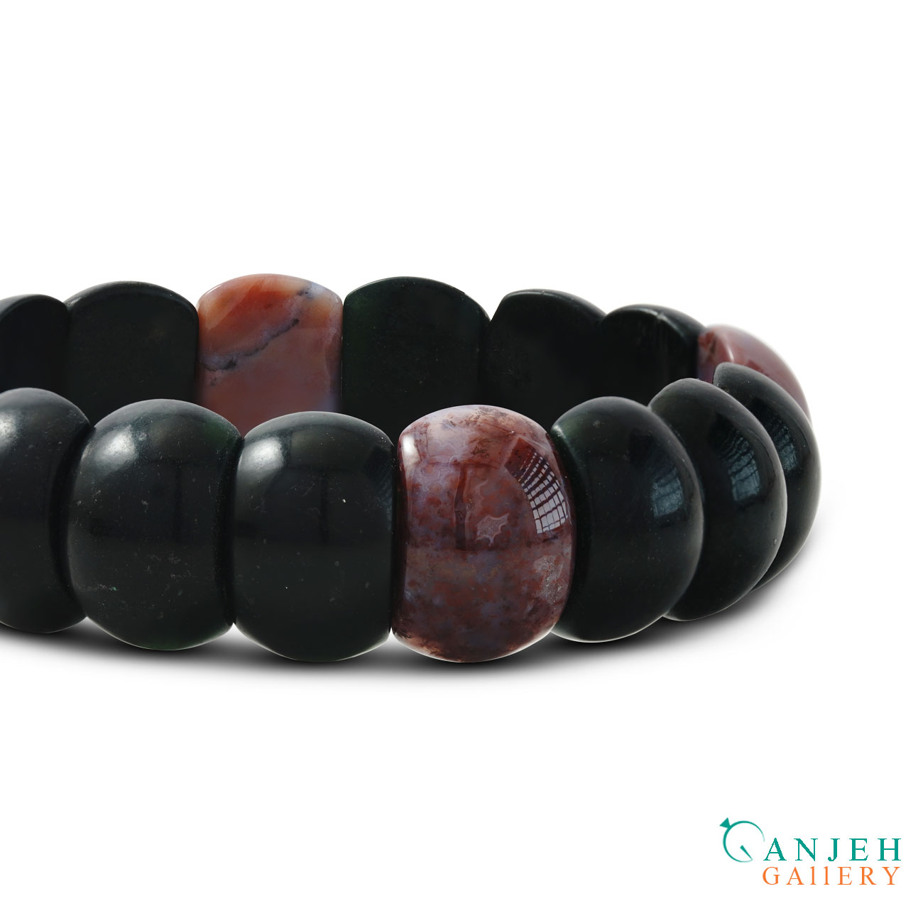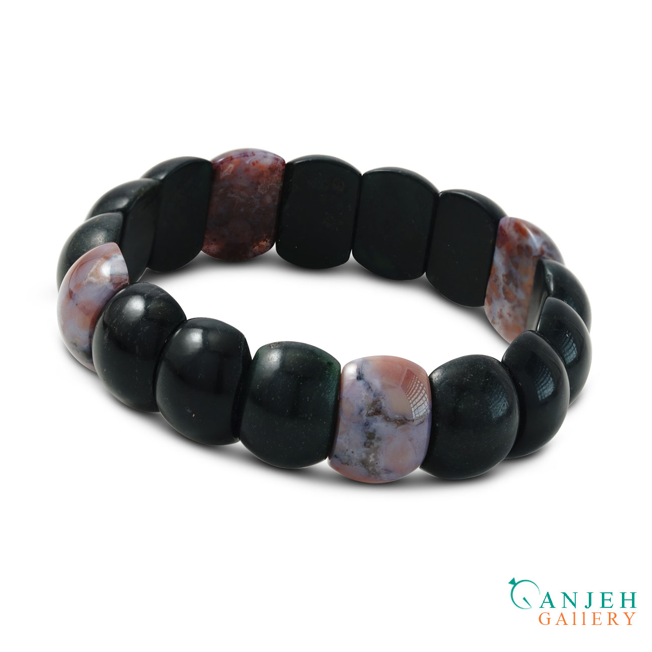 دستبند سنگی یشم مشکی و عقیق- کد N689-گالری جواهرات گنجه