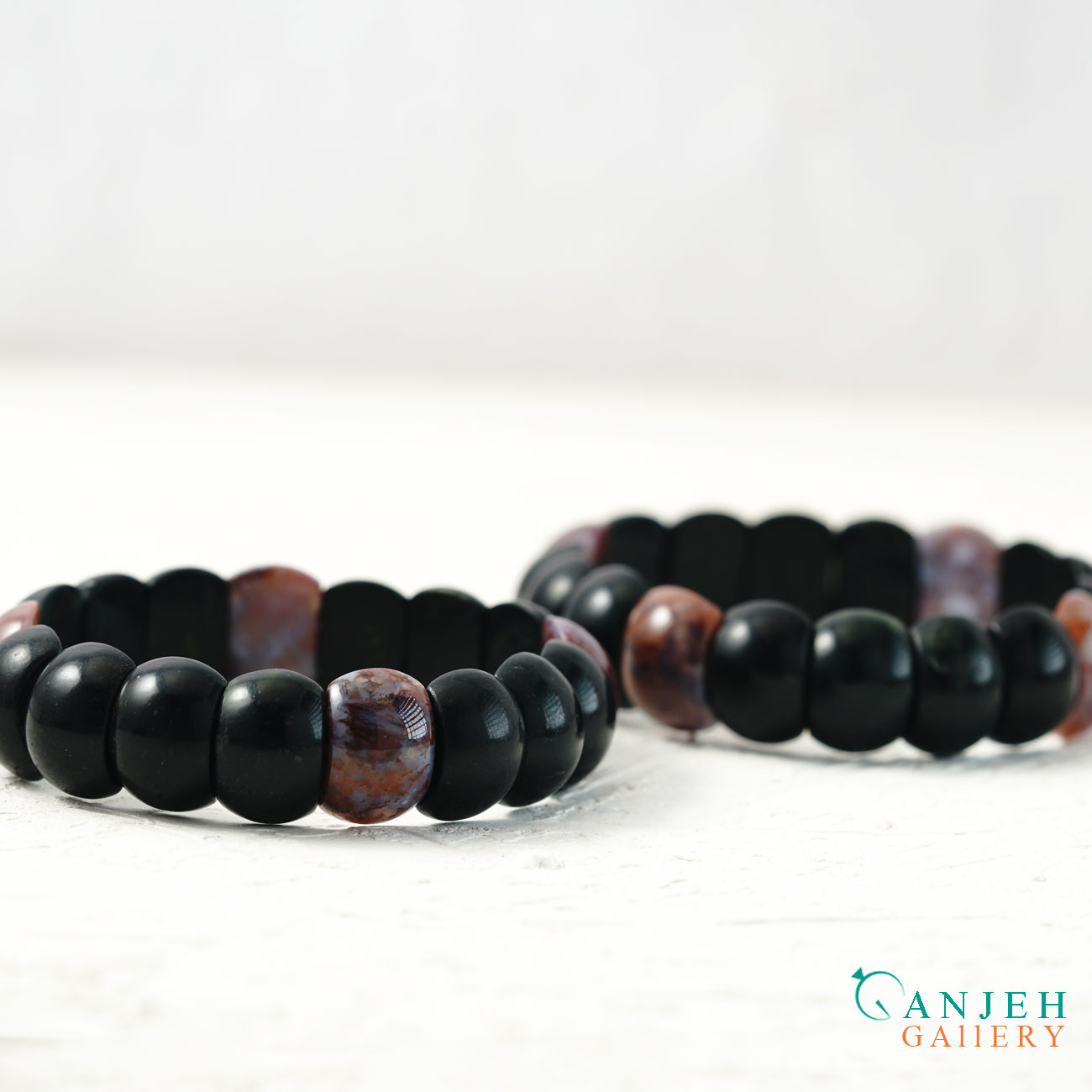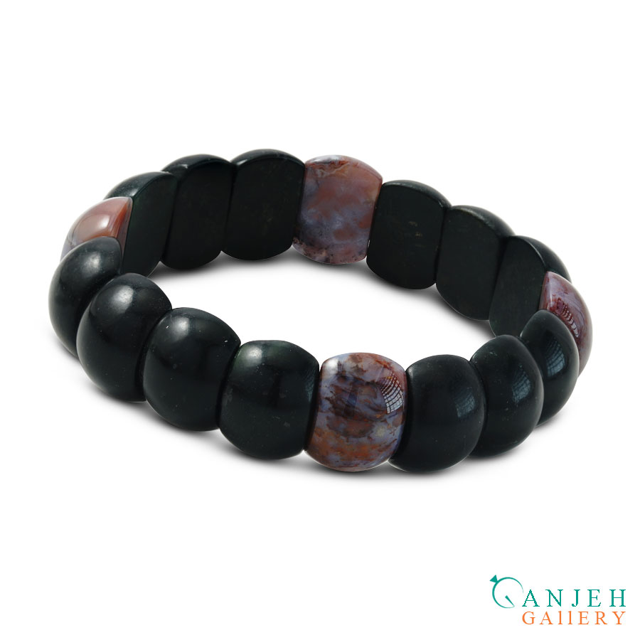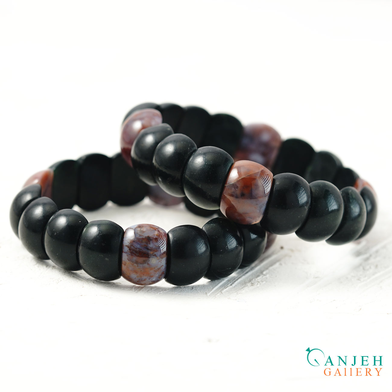 دستبند سنگی یشم مشکی و عقیق- کد N689-گالری جواهرات گنجه