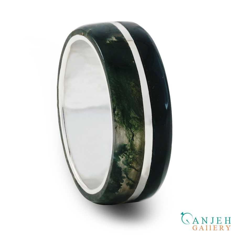 انگشتر عقیق شجر خزه ای با رینگ نقره کد N3017