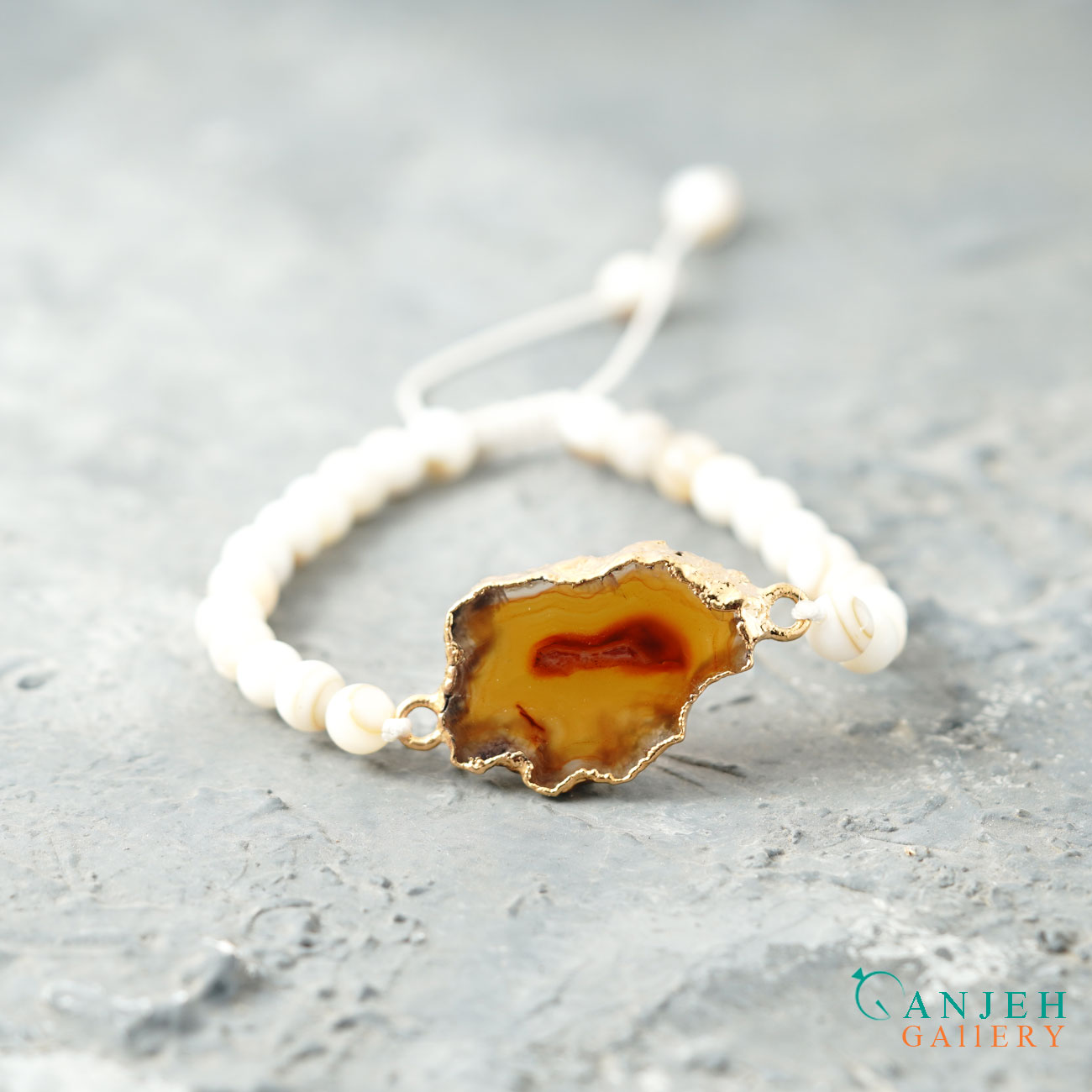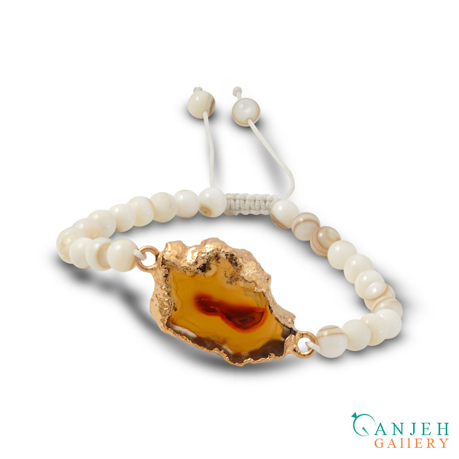 دستبند سنگی مهره ای عقیق و صدف کد N709